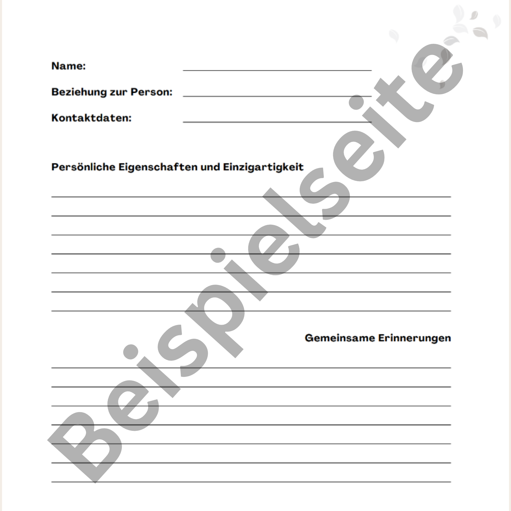 Ich war überrascht, wie feinfühlig das Buch gestaltet ist. Es schafft Raum für Trauer, aber auch für Dankbarkeit. Eine wunderbare Möglichkeit, jemanden in Erinnerung zu behalten.